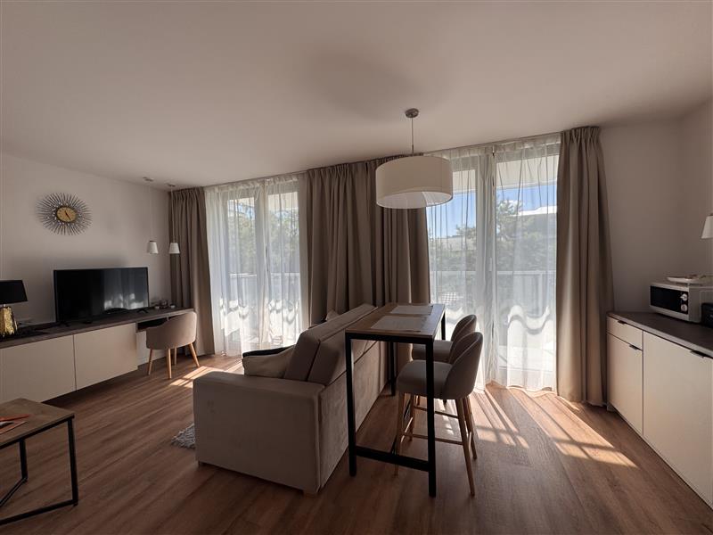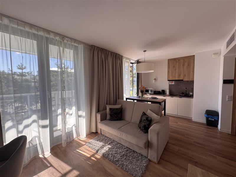 Budynek w którym znajduje się apartament zlokalizowany jest w pierwszej linii zabudowy od morza, oddany do użytku w 2022r., apartament położony od strony południowej ok 20m od plaży.