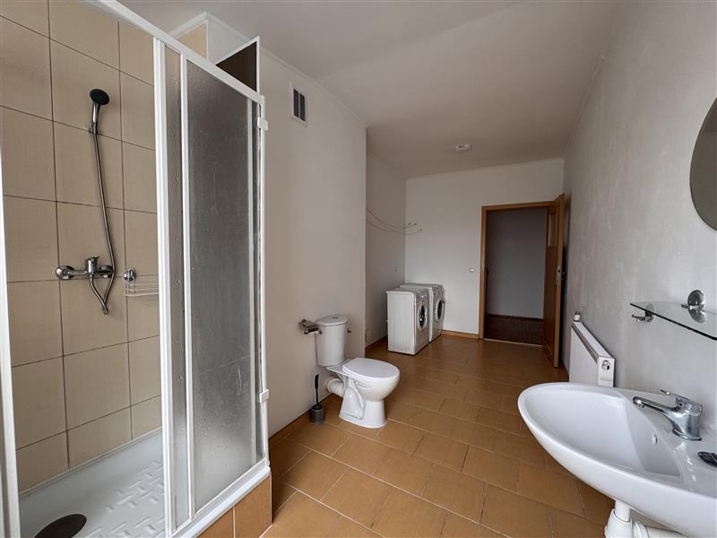 - łazienka- prysznic, zlew, lustro, pralka, wc, oświetlenie,