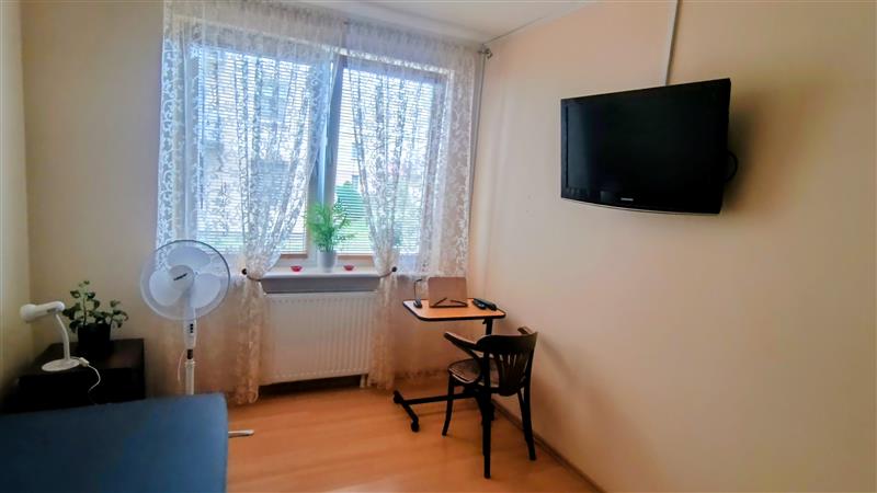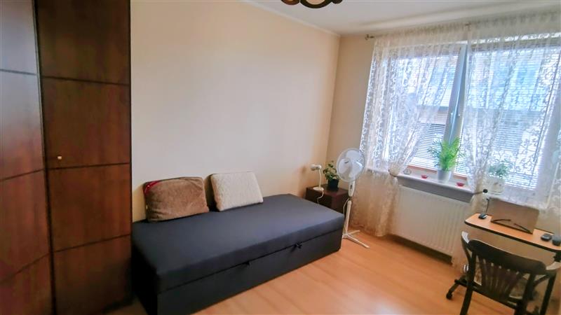 W pokojach na podłodze ładne panele podłogowe, ściany gładź. Łazienka z oknem, z kabiną prysznicową, na podłodze terakota, ściany glazura.