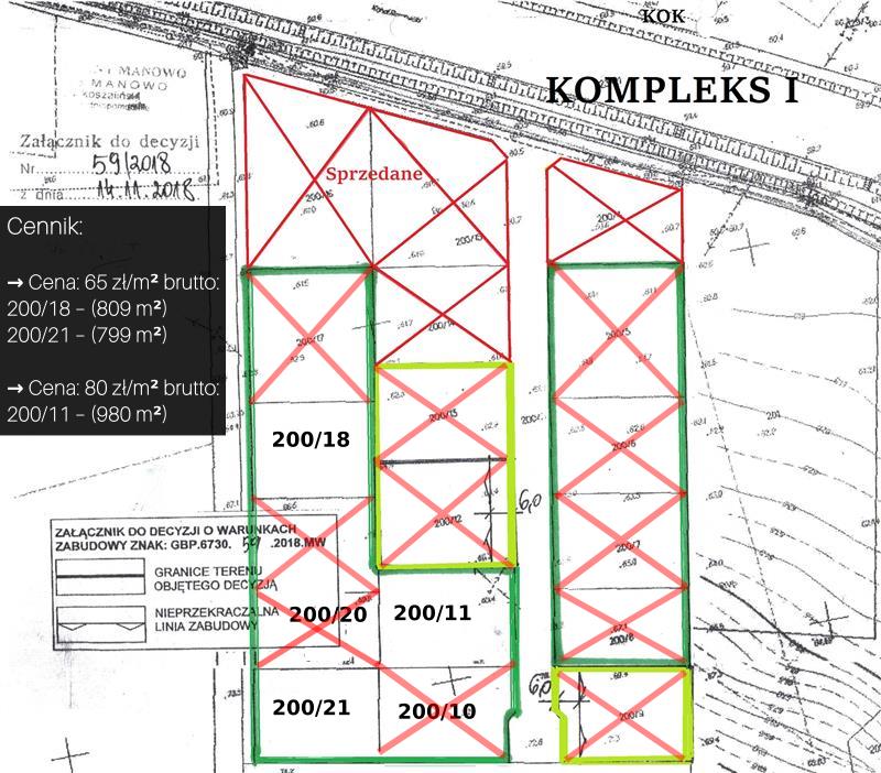Możliwość zakupu pojedynczych wymienionych działek w cenie 65 i 80 zł za 1 m2 brutto.