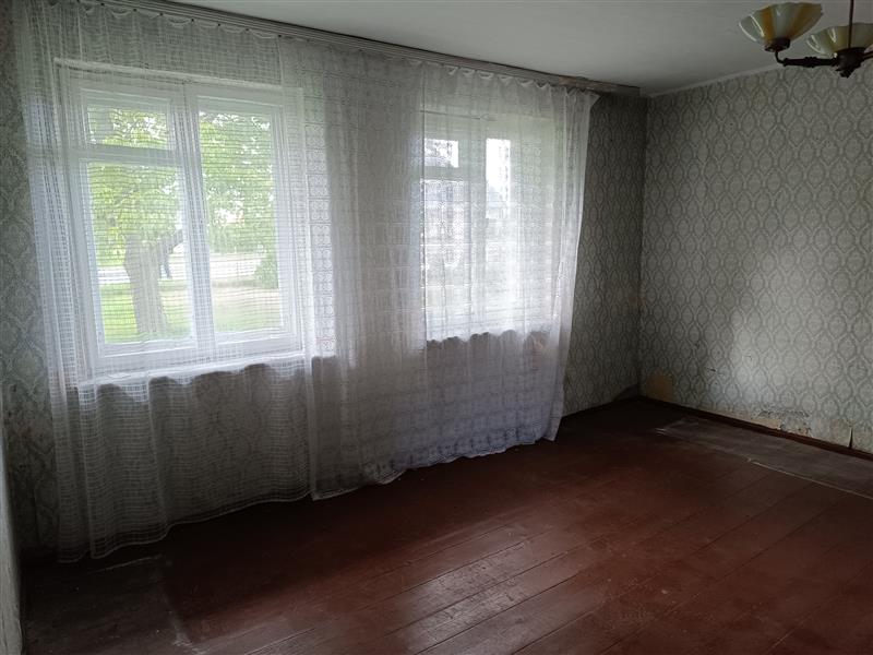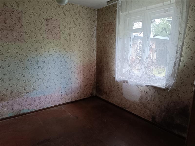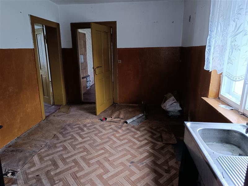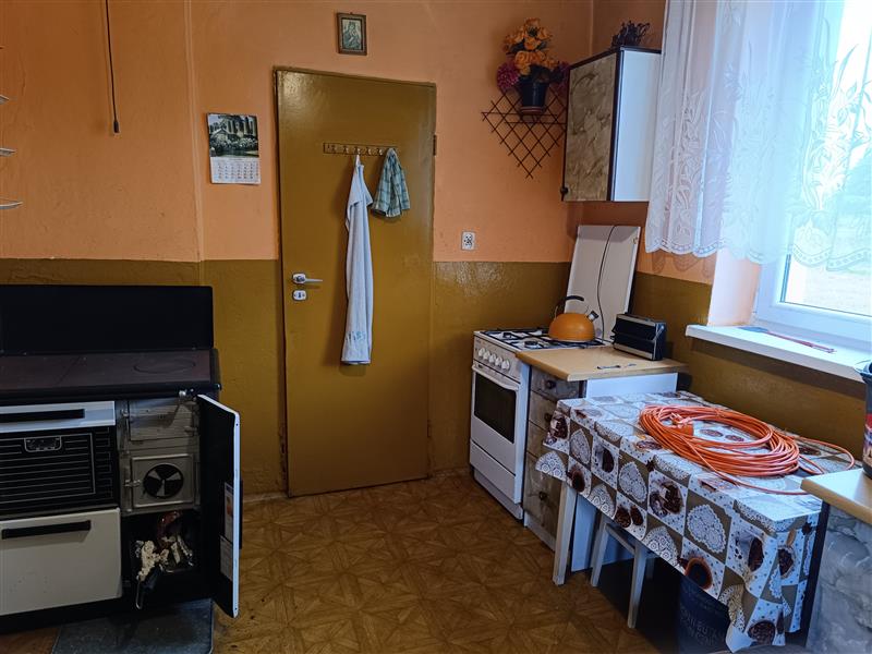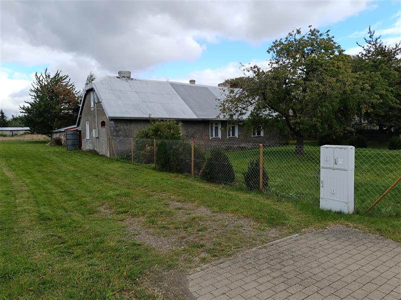Budynek mieszkalny w zabudowie wolnostojącej, parterowy z poddaszem. Dach dwuspadowy pokryty blachą. Do domu dwa wejścia do odrębnych dwóch lokali mieszkalnych, pierwsze mieszkanie o pow. ok. 41 m2 (2 pokoje, kuchnia, pom. gospodarcze), drugie o pow. ok. 62 m2 (3 pok., kuchnia, korytarz z wejściem na strych). Z obydwu mieszkań wejścia na strych o pow. ok 52 m2. Powierzchnia zabudowy 130 m2. Ogrzewanie piecowe. W kuchni westfalka, kuchenka gazowa na butlę, zlewozmywak. Wnętrze domu do własnej aranżacji, można połączyć jako całość