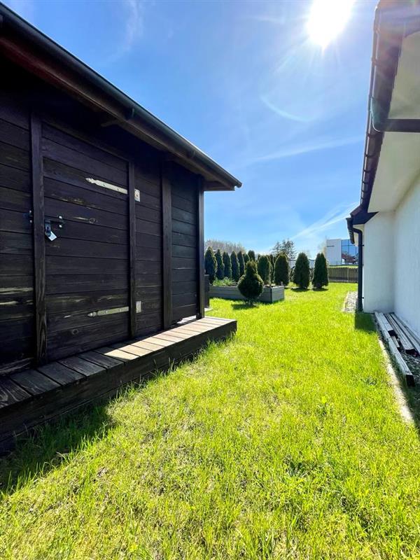 Piękny dom jednorodzinny w zabudowie bliźniaczej na os. Dzierżęcino! Parterowy z poddaszem użytkowym o powierzchni 150m2+garaż o pow. 19m2. Dom usytuowany na cichym, kameralnym i co jest warte podkreślenia oświetlonym Osiedlu. Ogrodzony, położony na działce o pow. 451m2 ładnie zagospodarowanej. Lokalizacja gwarantuje wspaniały krajobraz, doskonale nasłonecznienie oraz dogodny dojazd drogą asfaltową. Rozkład pomieszczeń:Dom o ciekawej architekturze i znakomitym układzie funkcjonalnym. Rozkład-PARTER: obszerny salon z kuchnią otwartą (z wyspą), jadalnią, 2 pokoje, łazienka z kabiną natryskową, holl, garaż jednostanowiskowy. PIETRO: duża sypialnia z garderobą oraz łazienka z wanną i prysznicem. Dodatkowo antresola, na której znajduje się miejsce do zagospodarowania. Standard wykończenia:Dom wykończony w wysokim standardzie. Na podłogach w pokojach deska egzotyczna oraz panele, okna drewniane, zabudowa kuchenna wysokiej klasy. Schody drewniane z metalową balustradą. Eleganckie drzwi wewnętrzne z naturalnego drewna. Poza tym dom został wybudowany z materiałów budowlanych wysokiej jakości. Dachówka ceramiczna, okna drewniane meranti, tynki gipsowe, elewacja z tynku mineralnego. Na podjazdach i na ogrodzie oraz tarasach wykorzystano kostkę typu starobruk. Brama garażowa na pilota. Instalacje wewnętrzne: wod- kan, gazowa, energetyczna, kominkowa (komin ceramiczny), alarmowa, domofon. Ogrzewanie gazowe. W kotłowni piec gazowy dwufunkcyjny z 150L. zasobnikiem wody. Pozostałe informacje:Dom oświetlony zewnętrznie (reflektory LED z czujkami zmierzchowymi). Na tarasie deska. Dodatkowo na posesji znajduję się niedawno wykonana drewniana wiata z miejscem przechowywania np. róźnych narzędzi.
