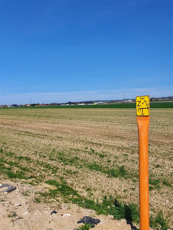 Media: prąd, gaz, woda i kanalizacja w drodze, w odległości około 100m od działki.