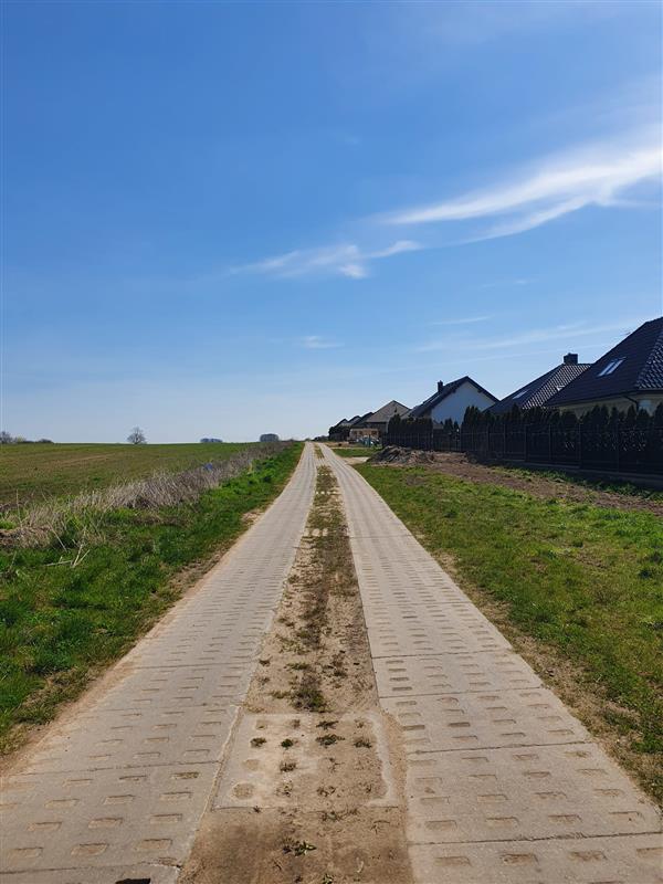 Wokół nowa zabudowa jednorodzinna i tereny niezabudowane.