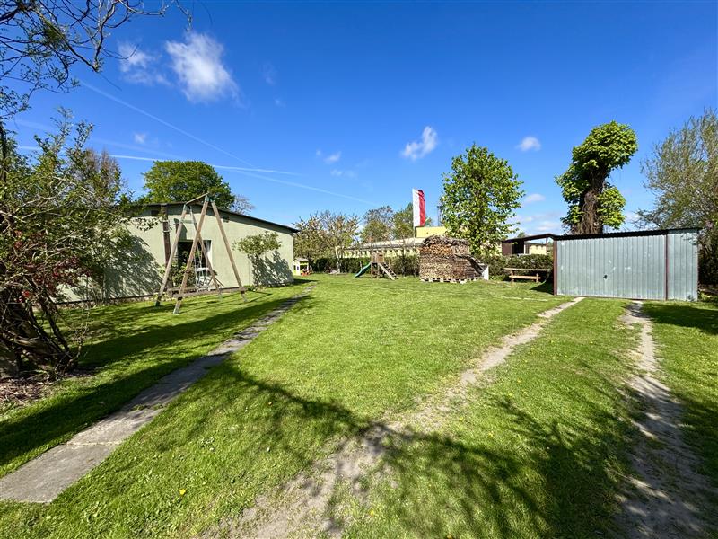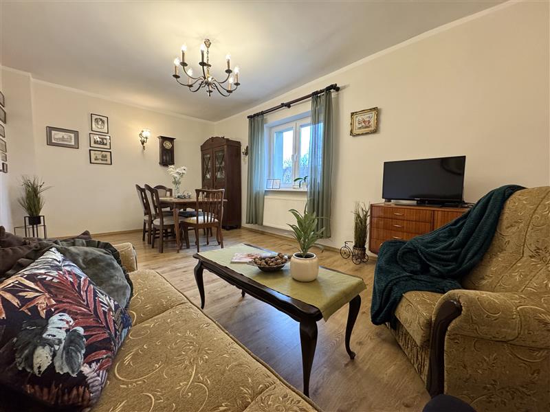 Nieruchomość wyróżnia się również zadbanym, urokliwym ogródkiem z licznymi drzewkami owocowymi, takimi jak jabłoń, grusza, czereśnia i inne. To idealna przestrzeń do wypoczynku, relaksu na świeżym powietrzu, a także uprawy roślin czy własnych warzyw.