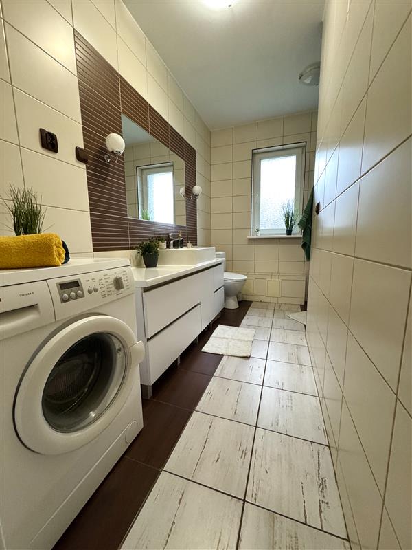 Dodatkowym atutem jest wydzielona część usługowa o powierzchni ok. 94 m2, która była wcześniej wykorzystywana przez właściciela do prowadzenia działalności. To świetna opcja dla osób planujących połączyć życie prywatne z pracą na miejscu – idealne pod biuro czy usługi rzemieślnicze.