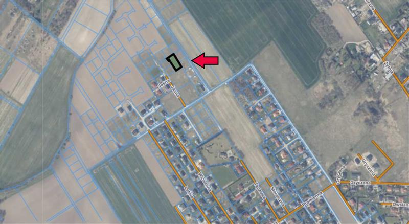 Nieruchomość o pow. 1.081m2, w kształcie prostokąta o przybliżonych wymiarach 48m x 22m (szer. x dł.). Teren równy, płaski – bez nasadzeń. W rejestrze gruntów działka w całości oznaczona jako RIVa.