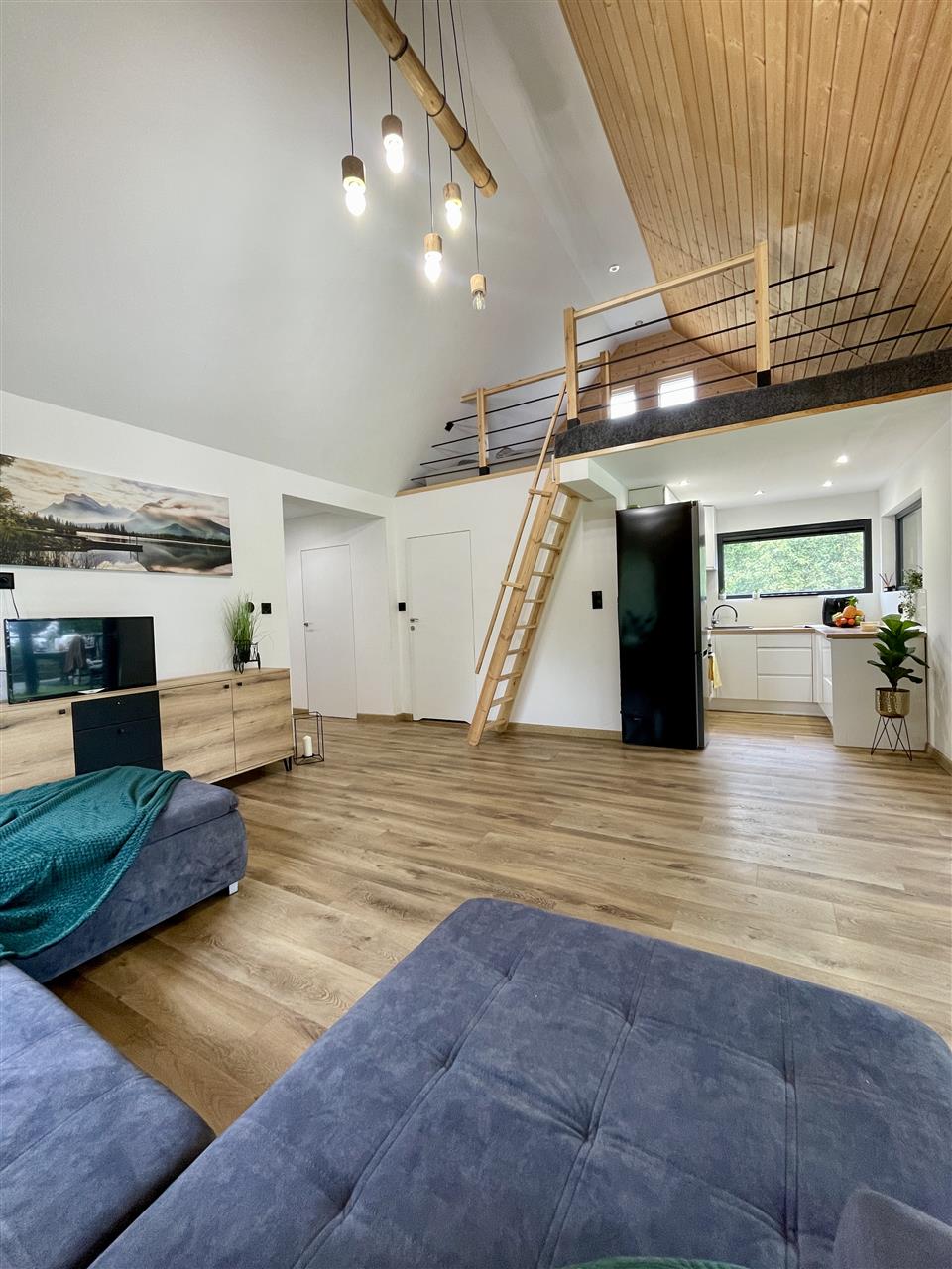 - antresola: pełni rolę dodatkowej przestrzeni — świetnie sprawdzi się jako gabinet, biblioteczka lub przytulny kącik wypoczynkowy.