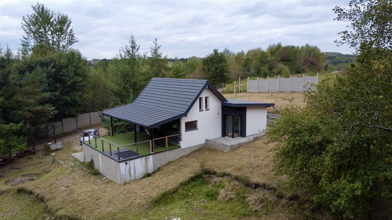 Standard: budynek wybudowany z Suporexu, częściowo z drewna. Ocieplenie styropian 25cm, dach: blacho-dachówka. Ogrzewanie indukcyjne, maty elektryczne firmy Dream Heat. Ciepła woda z datownika ciepłej wody (500l). Okna PCV trzyszybowe z roletami zewnętrznymi. Instalacja alarmowa oraz monitoring - kamery (Hikvision) na posesji.