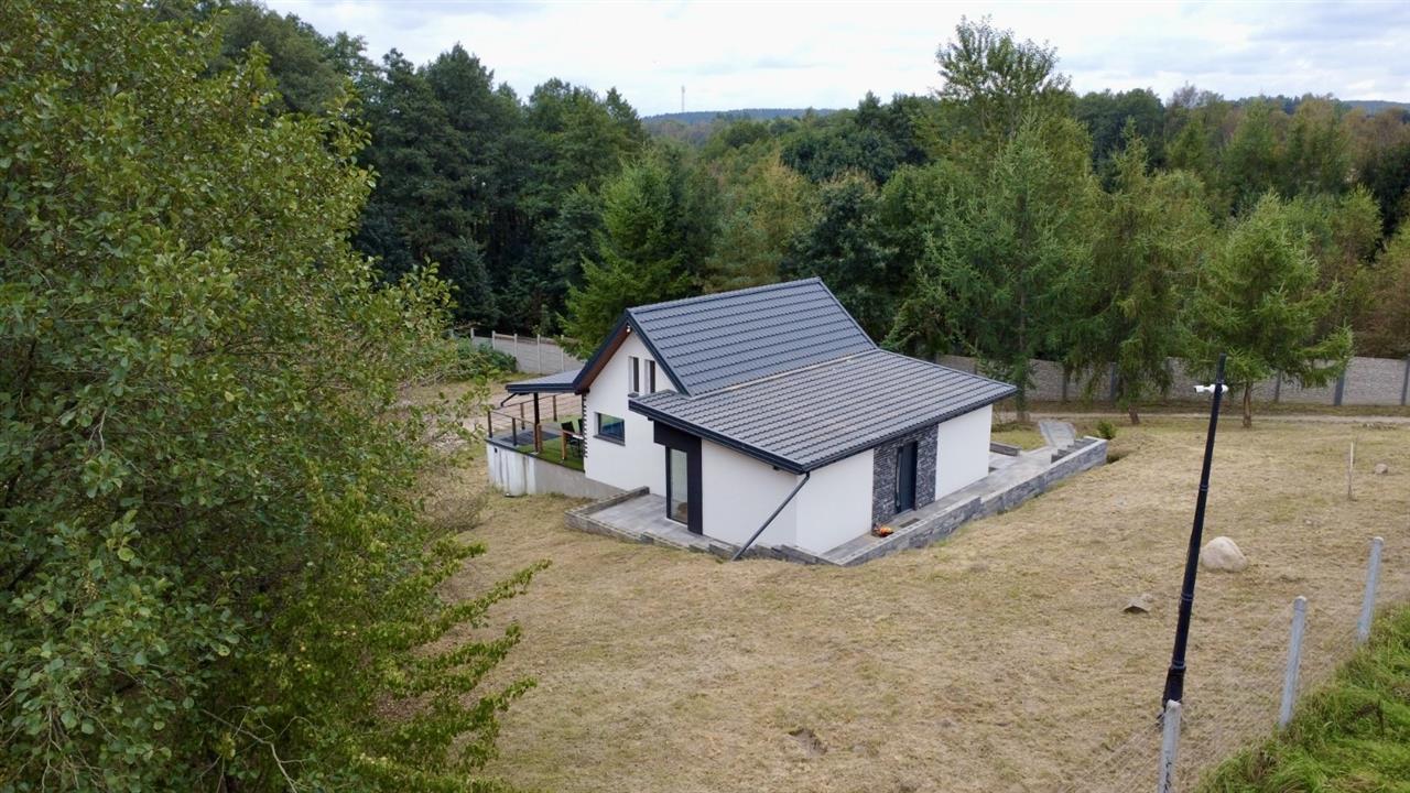 Dom o pow. 86m2, położony jest w spokojnej i malowniczej okolicy, z pięknym widokiem na jezioro i otaczającą przyrodę - w części nieruchomość położona na obszarze Natura 2000.