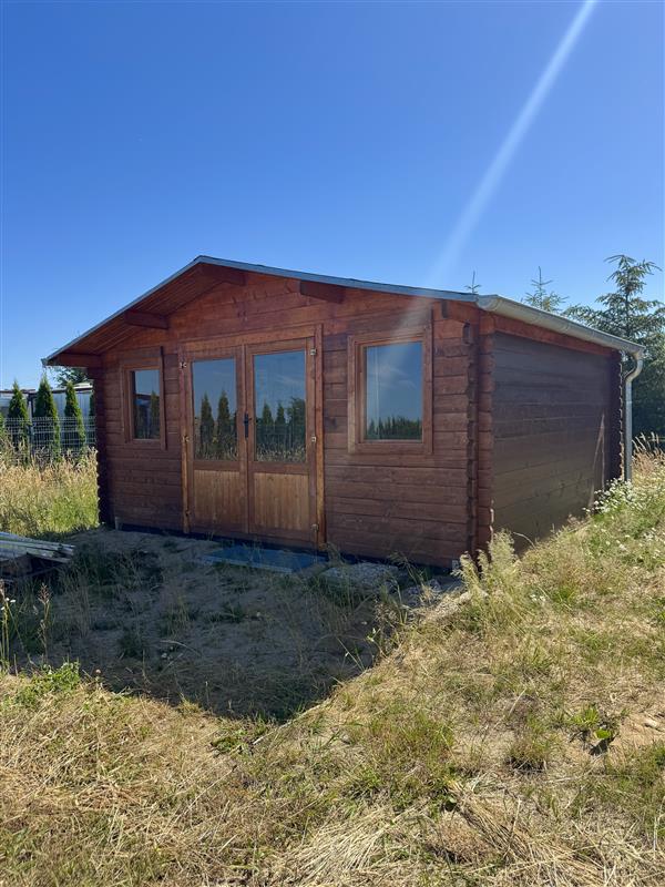 Specyfikacja domku letniskowego: wymiary: 4,80x4m; powierzchnia 19,2m2; pokrycie dachu: deski + papa + listewki; wykonany jest z wysokiej jakości drewna.