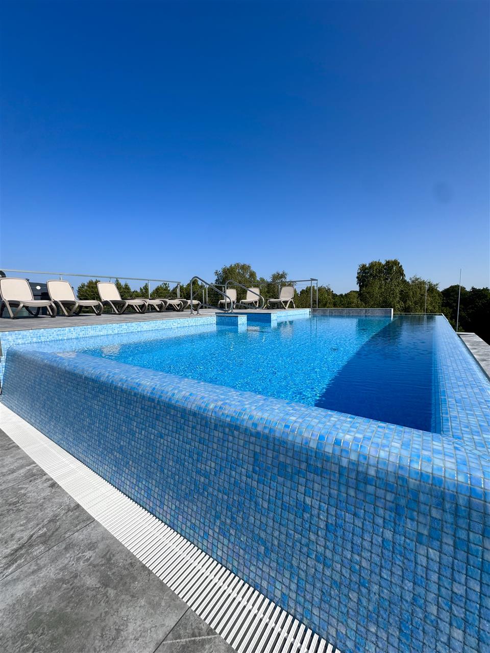 •przestronny taras wyłożony płytami gresowymi w systemie odprowadzającym wodę,