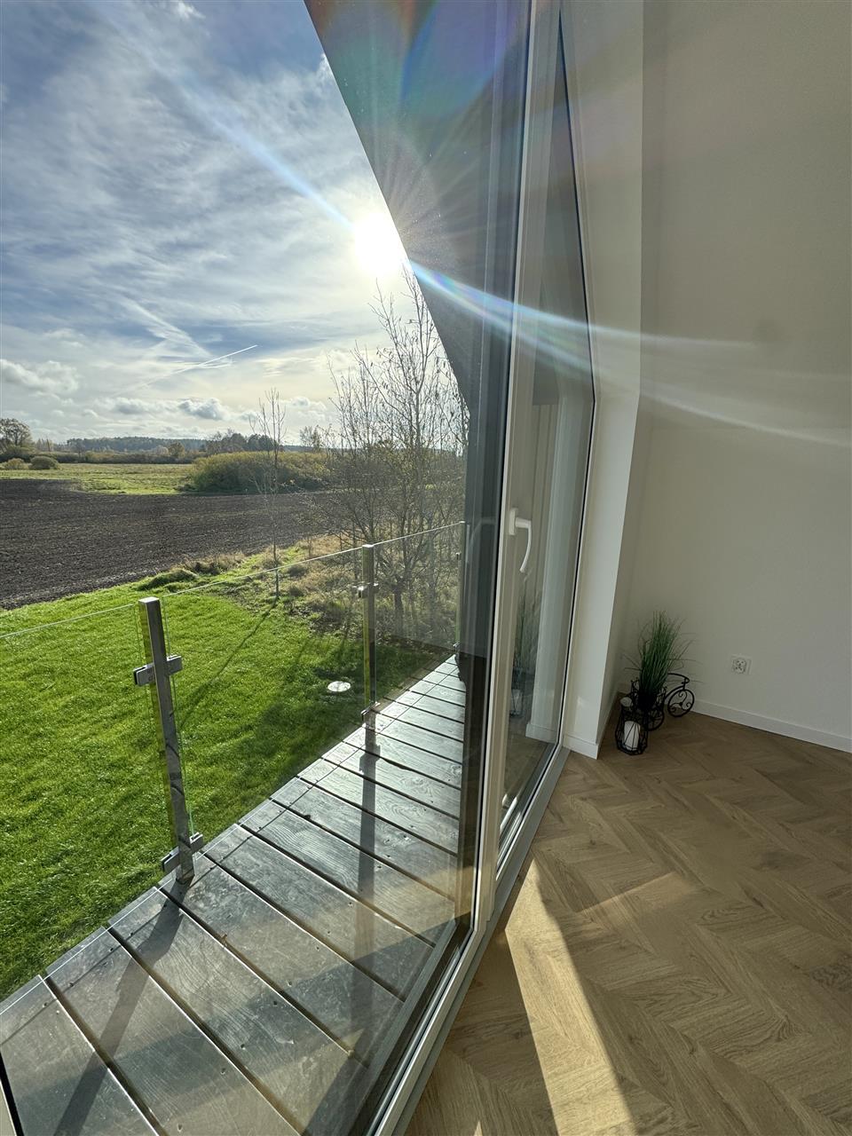 Architektura domu to połączenie nowoczesnego designu z dużą ilością przeszkleń, które pięknie doświetlają wnętrza i otwierają przestrzeń na otoczenie. Z salonu oraz sypialni rozciąga się piękny widok na otwartą przestrzeń i pola, co dodatkowo podkreśla kameralny i spokojny charakter tej lokalizacji.Układ pomieszczeń