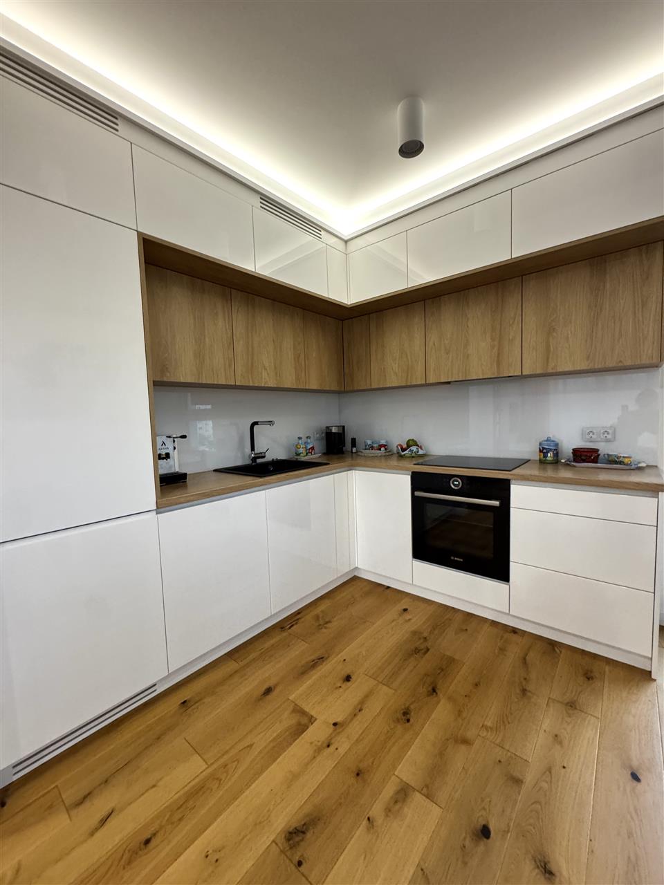 zabudowa kuchenna (zawiasy i prowadnice Bluma) wraz z sprzętem AGD tj. zmywarka Bosch, piekarnik Bosch, płyta indukcyjna Bosch, lodówka Liebherr, pralka Bosch, suszarka Candy, okap Berg