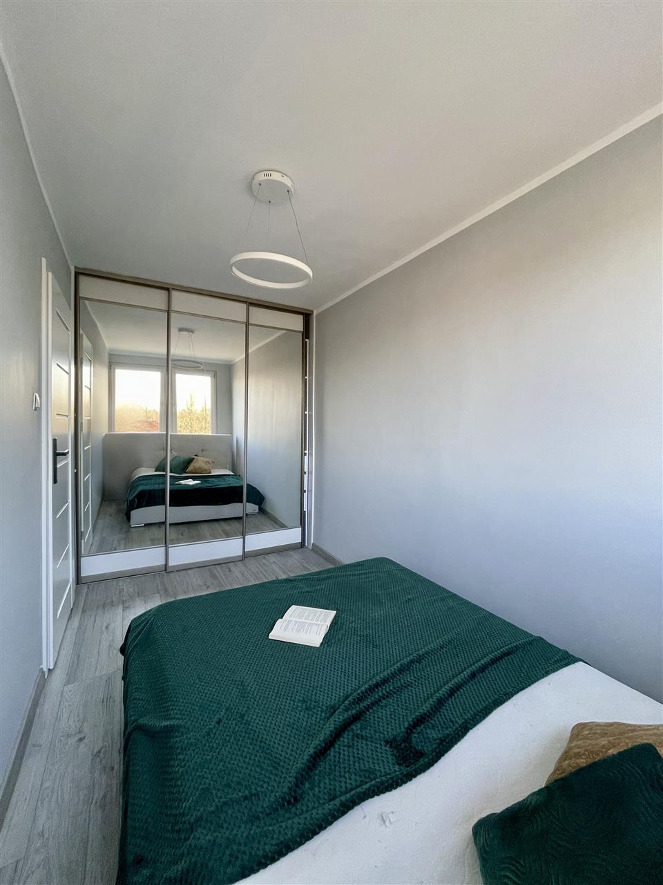 jeden z pokoi posiada dużą szafę przesuwną z lustrem