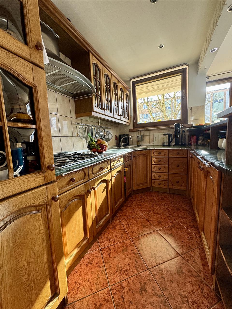 Lokal jest słoneczny i bardzo dobrze doświetlony, z dwustronną wystawą okienną, co zapewnia doskonałą cyrkulację powietrza oraz naturalne doświetlenie przez cały dzień. Duże okna sprawiają, że wnętrza są pełne światła i dają poczucie przestrzeni.