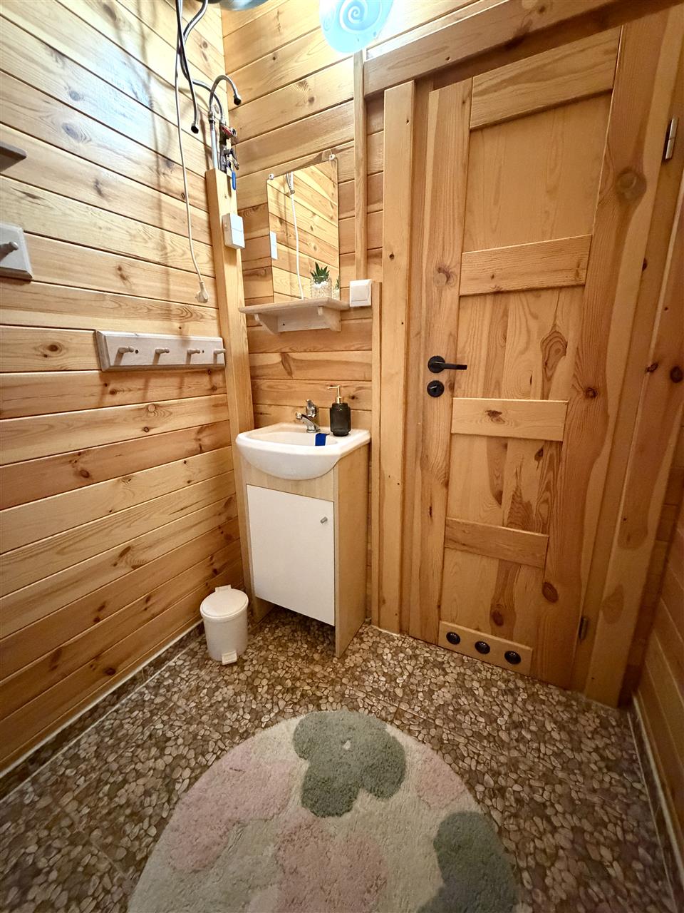 - 1 budynku letniskowo-mieszkalnego o konstrukcji drewnianej, parterowy z poddaszem użytkowym wybudowany w 2018r. Całość o powierzchni użytkowej 45m2. Obiekt całoroczny z ogrzewaniem w postaci tzw. kozy.