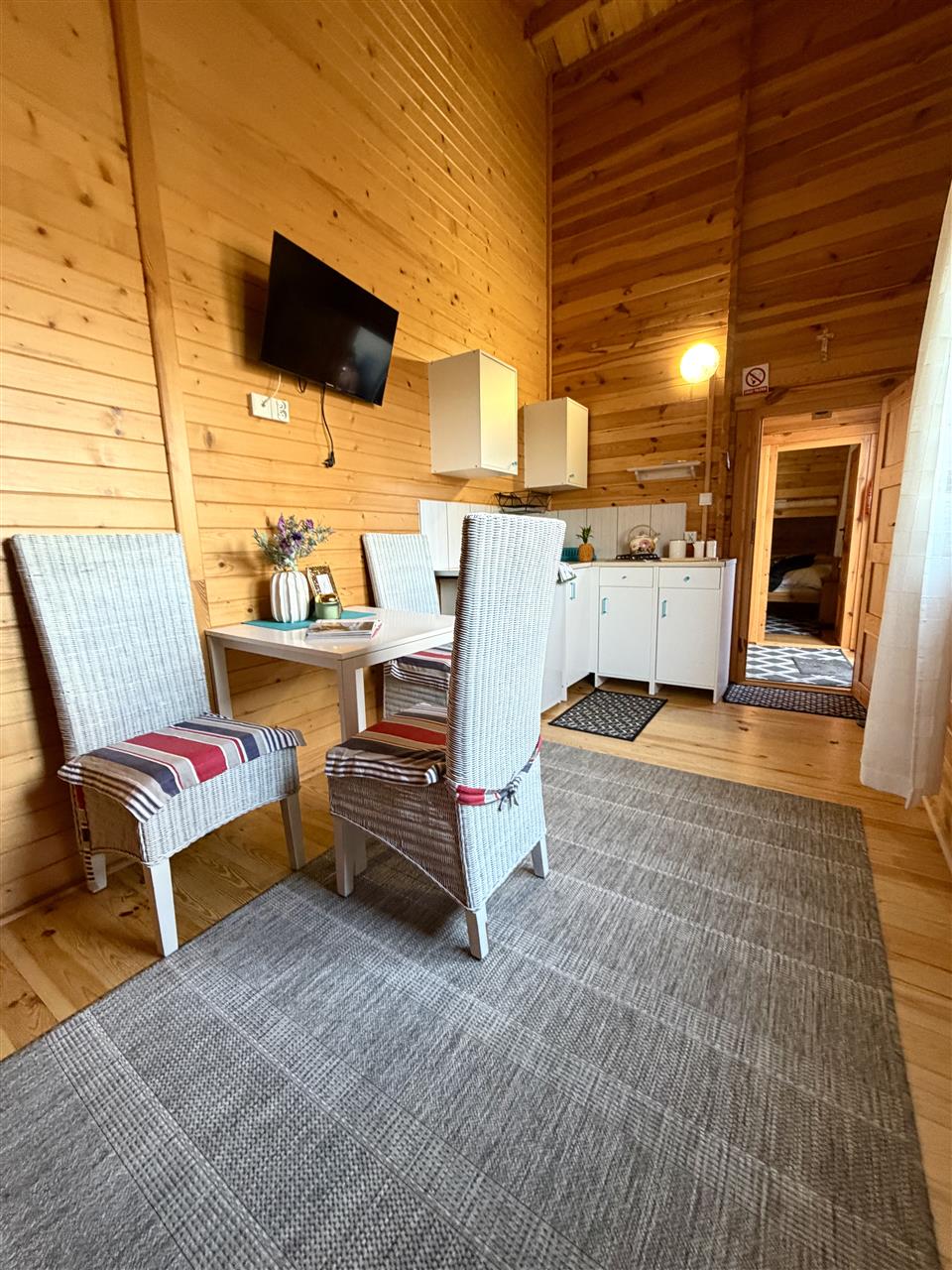 - instalacje: sieć elektryczna, wodno-kanalizacyjna. W kuchni aneks kuchenny z kuchenką gazową zasilaną z butli przenośnej