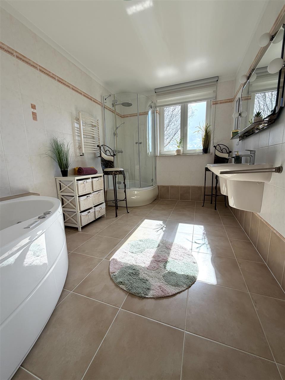 Przestronny dom o dużym metrażu daje również szerokie możliwości adaptacyjne- działalność turystyczna lub dom opieki dla seniorów. Rozległa działka daje możliwość zagospodarowania na miejsca rekreacyjne, parking czy dodatkową infrastrukturę.