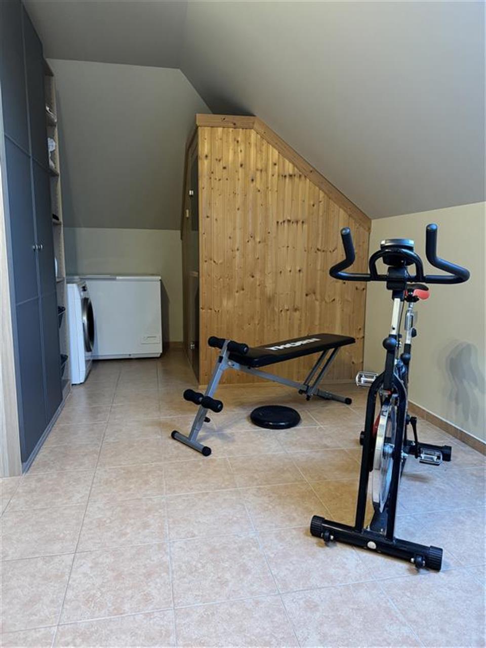 PIęTRO: Składa się z czterech sypialni w tym jedna z garderobą i łazienką, pomieszczenia pełniącego funkcję siłowni z sauną, przestronnej łazienki oraz holu gdzie znajdziemy aneks kuchenny. Hol wyłożony pięknym litym drewnem oferuje dodatkową przestrzeń do spotkań, a aneks kuchenny ułatwia serwowanie tam pysznych dań.