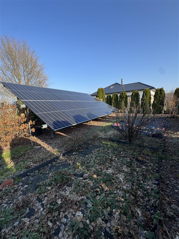 W rogu działki znajduje się instalacja fotowoltaiczna, dzięki której możesz cieszyć się praktycznie darmowym prądem. To ogromny atut – nie tylko obniża rachunki, ale także sprawia, że dom jest bardziej niezależny energetycznie i przyjazny dla środowiska.