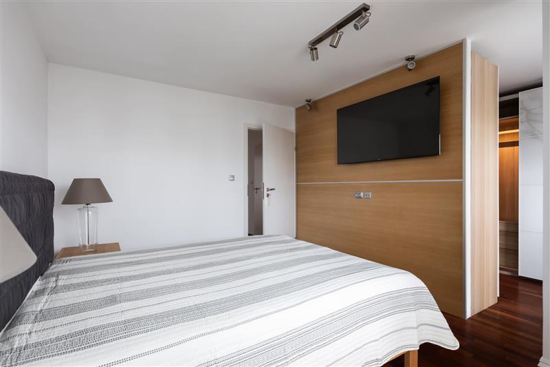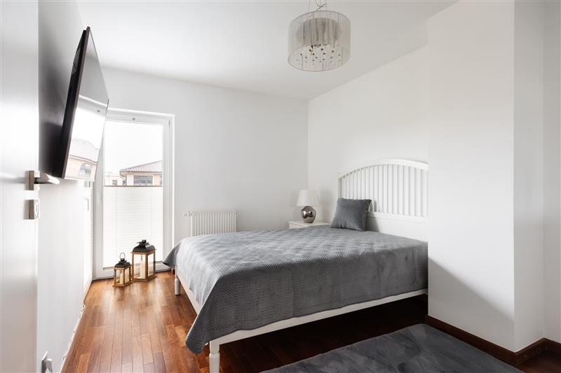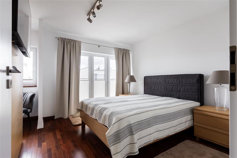 Schodami drewnianymi przechodzimy na piętro gdzie do dyspozycji właściciela pozostają trzy w pełni wyposażone sypialnie w tym jedna z garderobą, z dwóch sypialni wyjście na balkon od strony południowej, oraz łazienka z prysznicem.