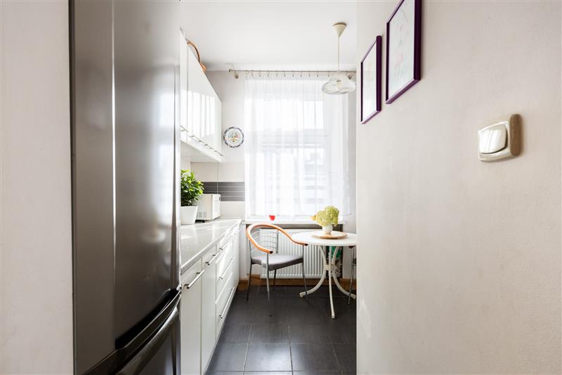 Układ i wyposażenie: przestronny jasny salon,oddzielna sypialnia z zabudową stałą,oddzielna jasna kuchnia w pełnej zabudowie (zmywarka, okap, piekarnik, płyta)łazienka z wanną,szeroki funkcjonalny korytarz z szafą w zabudowie stałej