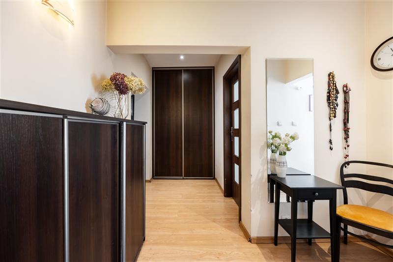 Układ i wyposażenie: przestronny jasny salon,oddzielna sypialnia z zabudową stałą,oddzielna jasna kuchnia w pełnej zabudowie (zmywarka, okap, piekarnik, płyta)łazienka z wanną,szeroki funkcjonalny korytarz z szafą w zabudowie stałej