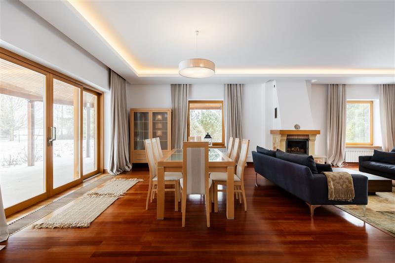 Salon – otwarte wejście z hallu, połączony z kuchnią pełen obieg słońca, wyjście na duży taras i ogród, okna z 3 stron, kominek. Dla amatorów osobnej kuchni jest możliwe bardzo łatwe oddzielenie jej od salonu poprzez różne rozwiązania.