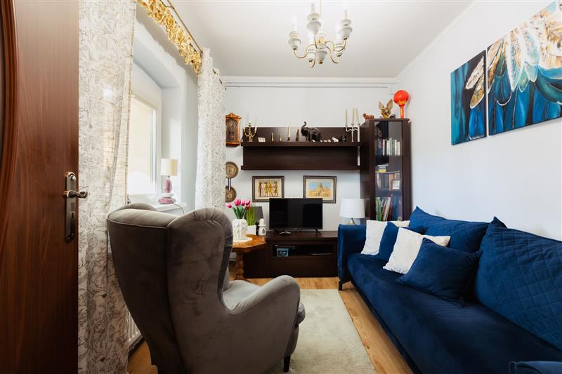 Media: centralne oraz woda ciepła z pieca dwufunkcyjnego Deditrich na gaz z butli, prąd woda i kanalizacja z sieci gminnej.