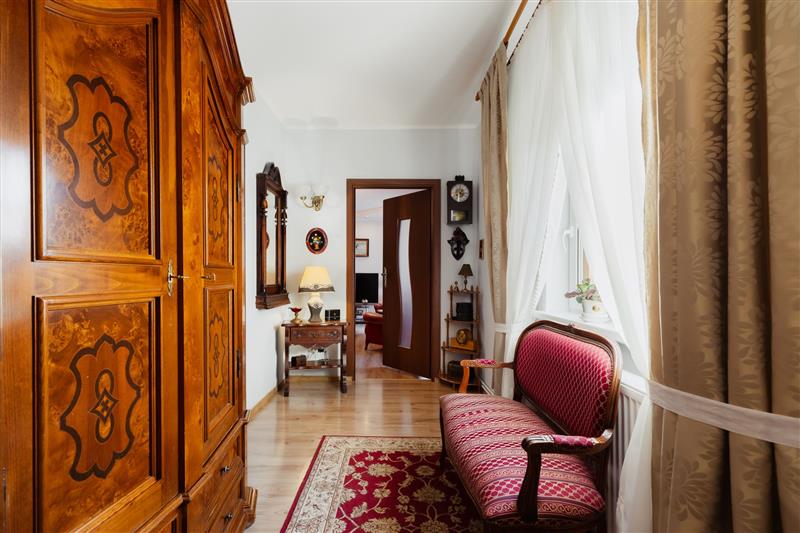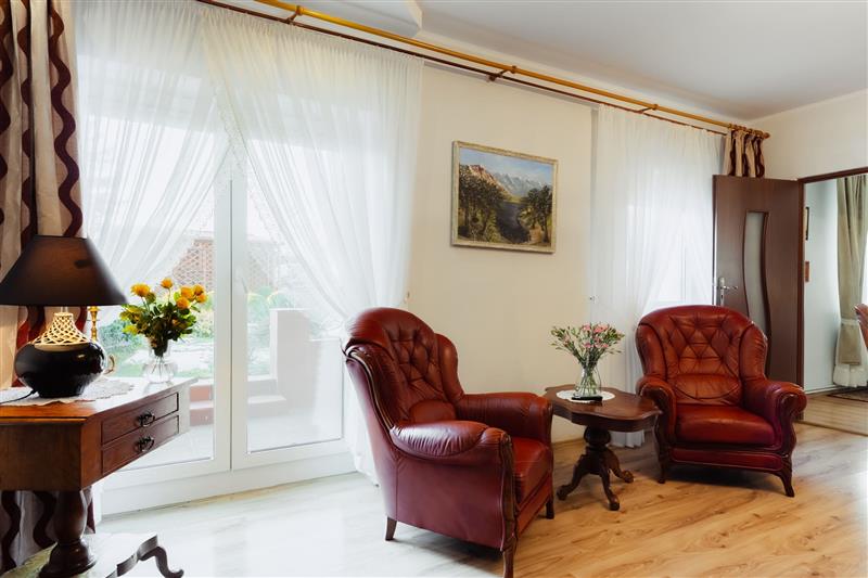 Budynek położony jest w głębi działki, bezpośrednio przy terenie parkowym, co gwarantuje spokój i brak intensywnej zabudowy w sąsiedztwie. Oświetlenie zewnętrzna oraz monitoring potęguje bezpieczeństwo na posesji.