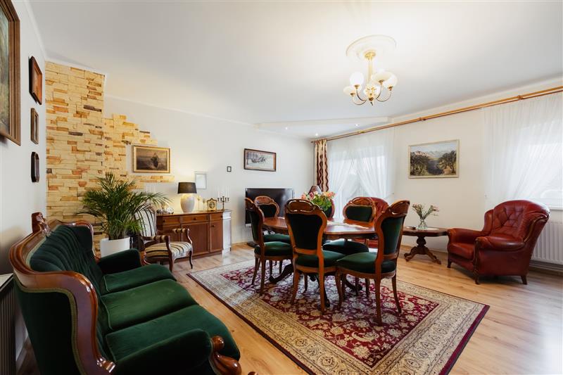 Funkcjonalny układ pomieszczeń zapewnia wygodne codzienne użytkowanie: przestronny salon dwie sypialnie oddzielna kuchnia oraz kuchnia dodatkowa od zaplecza łazienka oraz osobne WC pomieszczenia gospodarcze kotłownia spiżarnia