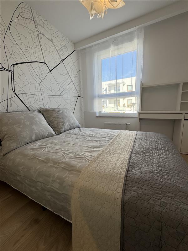 Mieszkanie wyposażone jest we wszystkie meble i sprzęty niezbędne do funkcjonowania: zmywarka, pralka, piekarnik, szafy w korytarzu i sypialni, sofa rozkładana w salonie.