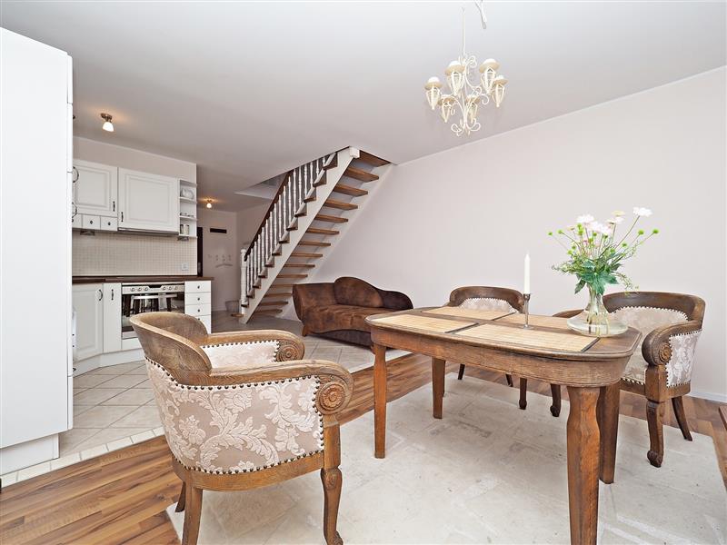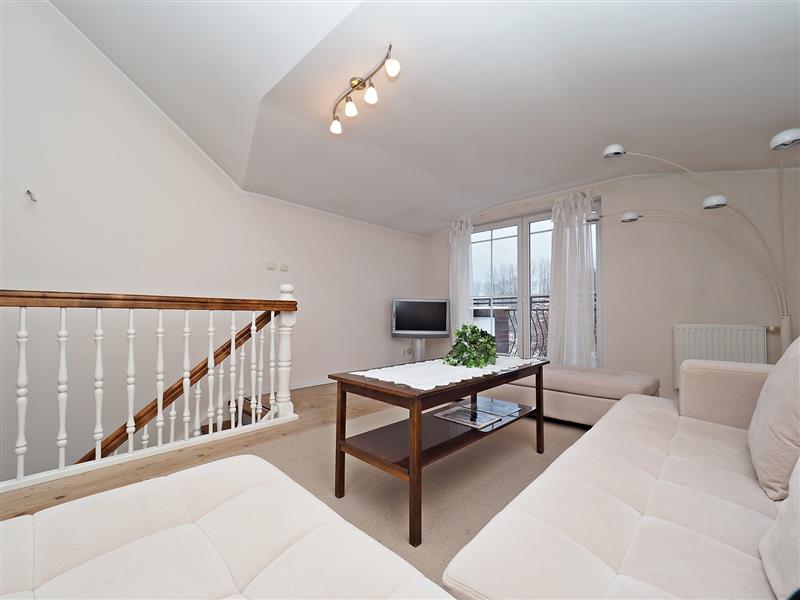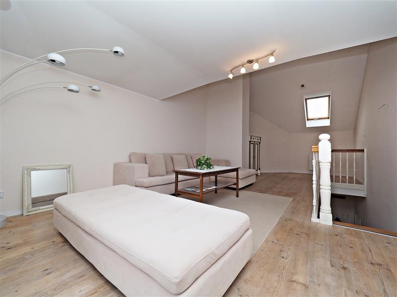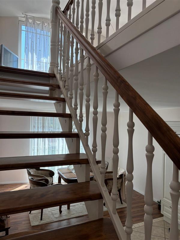 - na pierwszym poziomie pokój dzienny z wyjściem na balkon, kuchnia, przedpokój oraz łazienka z wc.
