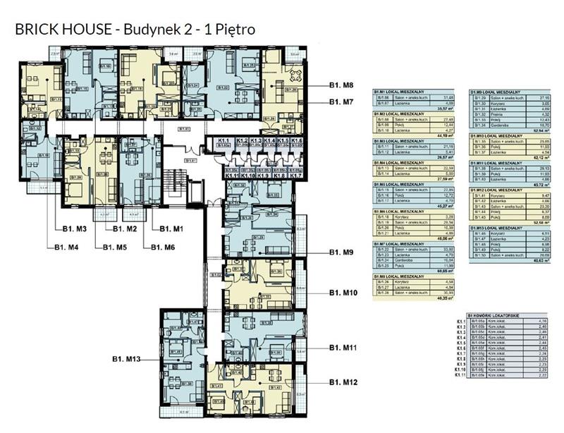 Mieszkanie B1.M5 składa się z salonu połączonego z aneksem kuchennym o pow. 27,85 m2, pokoju o pow. 12.72 m2 oraz łazienki o pow. 4,79 m2. Mieszkanie posiada balkon o pow. 2.50 m2.