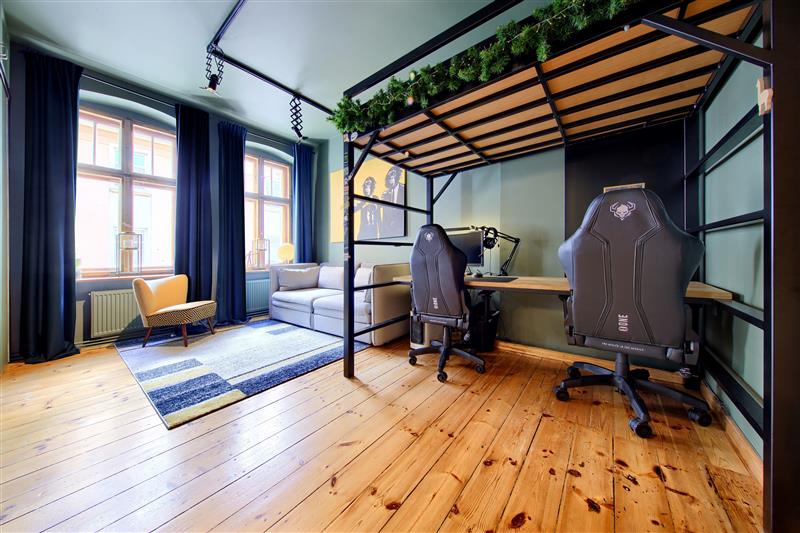 W cenie pozostają zabudowy stałe, wyposażenie kuchni oraz łazienki. Istnieje możliwość pozostawienia pełnego umeblowania widocznego na zdjęciach – do uzgodnienia.