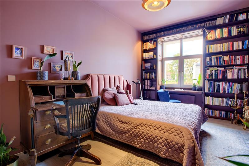 W mieszkaniu zachowano oryginalną stolarkę drzwiową i drewniane okna, które podkreślają charakter kamienicy.