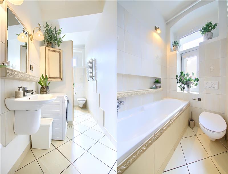 Mieszkanie składa się z:salonu / pokoju dziennego z komfortową strefą wypoczynkową,klasycznej kuchni z pełnym wyposażeniem AGD (zmywarka, piekarnik, okap, lodówka, płyta gazowa),dwóch sypialni – w jednej z nich znajduje się przestronna garderoba,łazienki z wanną, oknem, szafkami i miejscem na pralkę,holu z niezależnym wejściem do każdego pomieszczenia,dużej piwnicy, idealnej do przechowywania rowerów i rzeczy sezonowych.
