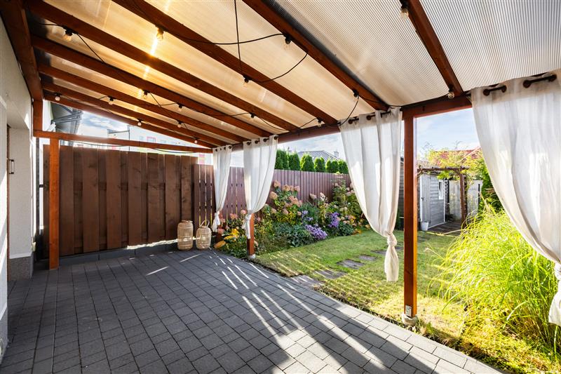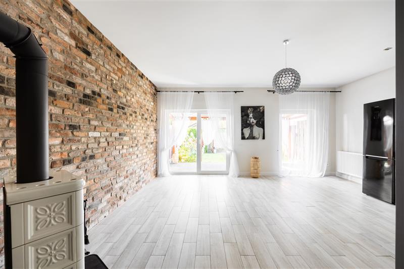 Z salonu wyjście na taras i ogród – idealne miejsce na relaks i spotkania z rodziną.