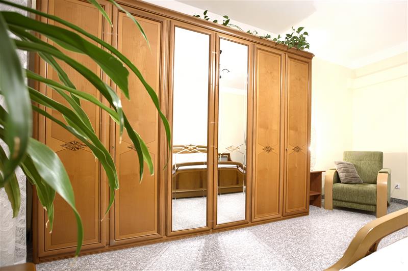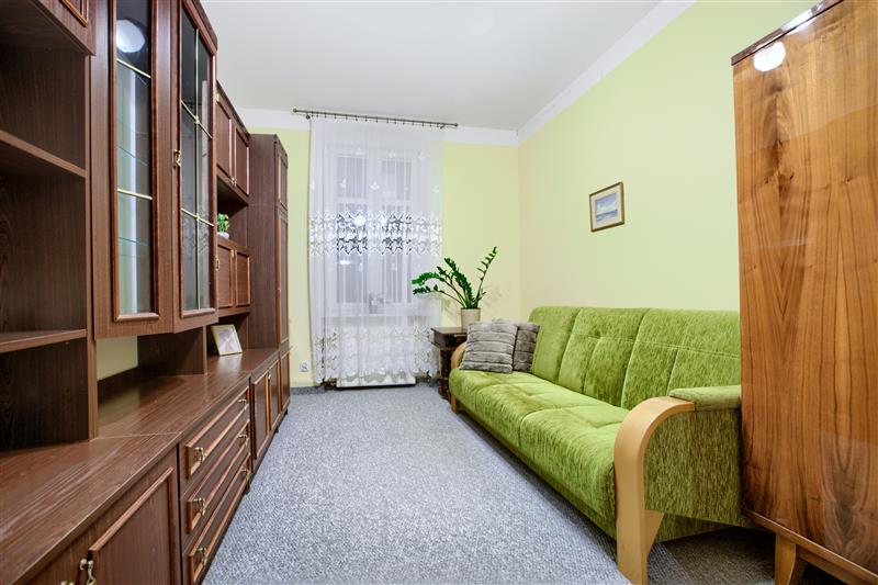 • w mniejszym pokoju: kanapa oraz meblościanka