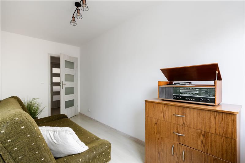 W mieszkaniu pozostaje umeblowanie stałe oraz meble widoczne na zdjęciach. Całość tworzy spójne, przytulne i bardzo estetyczne wnętrze.