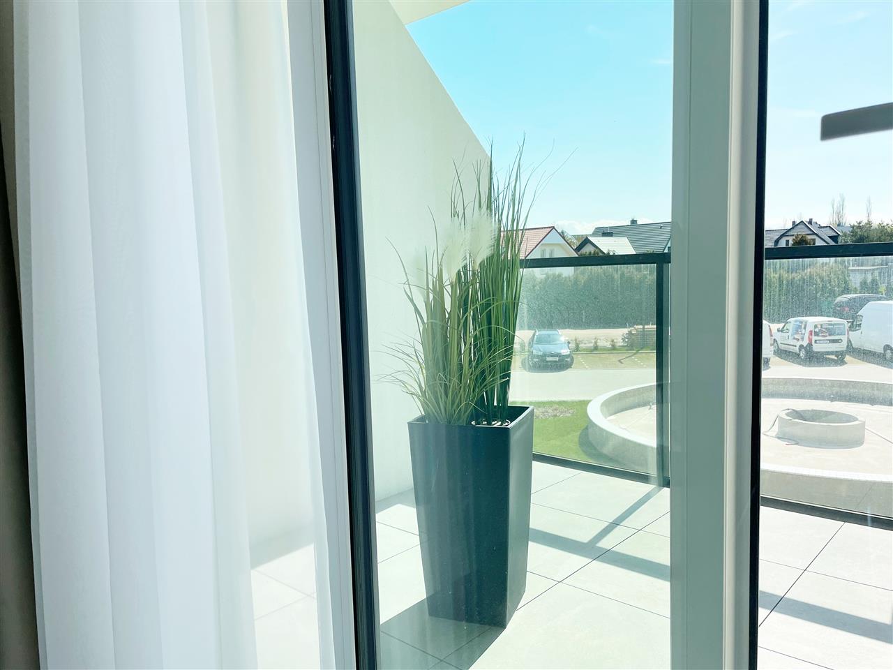 Apartament posiada duże trzyszybowe okna skierowane na stronę południową z widokiem na fontannę.