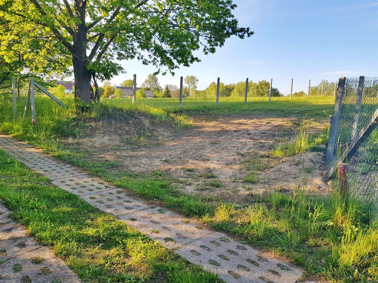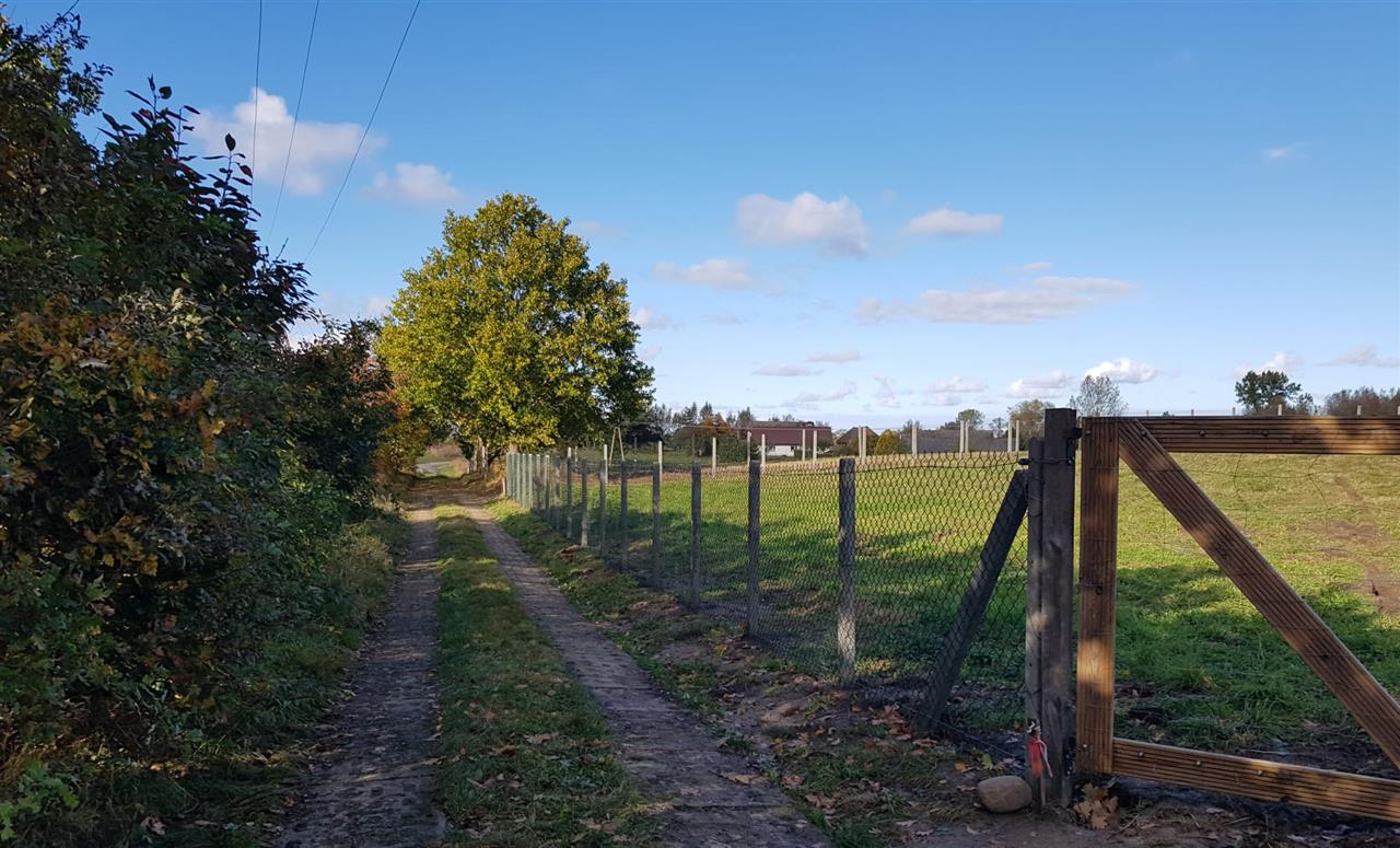 Działka w kształcie prostokąta o wymiarach ok. 54 m x 27 m, z jednej strony już ogrodzona.