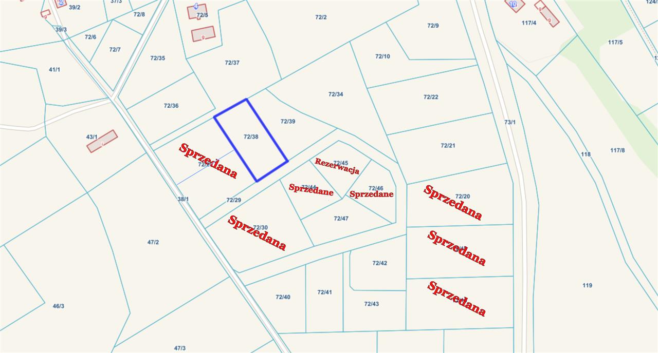 Dojazd drogą gminną wyłożoną płytami jumbo (38/1) - a potem działką, stanowiącą drogę wewnętrzną o szerokości od 8 do 9 metrów- zapewniającą komfort dojazdu, parkowania, bezpieczeństwo w poruszaniu się oraz przestrzeń potrzebną na umiejscowienie niezbędnych mediów,