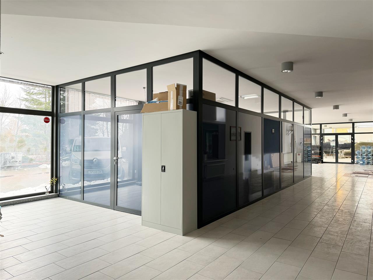 sali wystawowo- ekspozycyjnej, w której zostało zaaranżowane przeszklone biuro (możliwość demontażu pomieszczenia biurowego i uzyskania dużej przestrzeni),