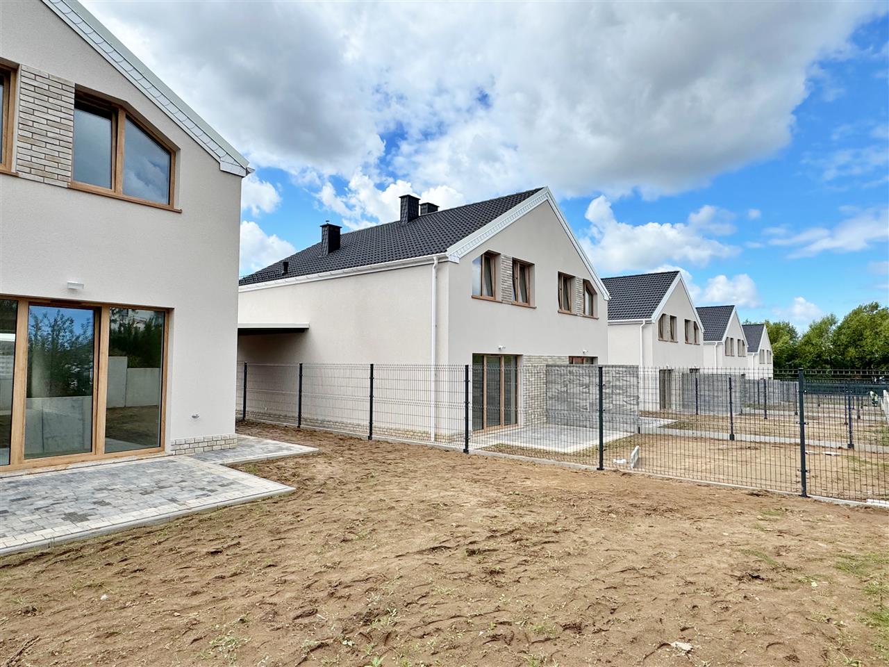 Wykończenie w standardzie developerskim – idealne dla osób, które chcą stworzyć wnętrza dopasowane do własnego gustu: tynki maszynowe, wtyczki, kontakty, ogrzewanie indywidualne gazowe- podłogowe firmy Tece wraz z piecem 2-funkcyjnym 24 kW firmy DE Dietrich ze sterownikiem. Dodatkowo w łazience i wc na parterze kaloryfer – drabinka. Stolarka okienna firmy Veka w kolorze Dąb WOODEC TURNER strona zewnętrzna, od wewnątrz w kolorze białym.  Rozprowadzona instalacja do podłączenia urządzeń. Instalacja RTV - w każdym pokoju gniazdko RTV. Wykonane podejście do kominka. Dach: dachówka cementowa. Drzwi wejściowe antywłamaniowe. Schody wewnętrzne wylewane betonowe. Dojście do budynku oraz teren przed nim wyłożony kostką polbrukową lub ażurową. Brama wjazdowa (szlaban) na pilota. Wydzielone ogródki (określony sposób do korzystania). Budynek niepodpiwniczony.