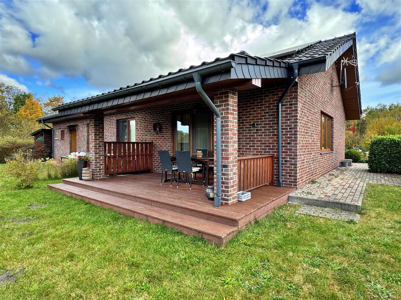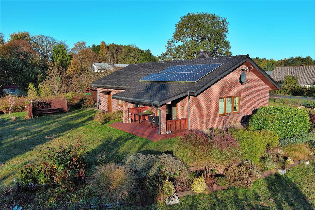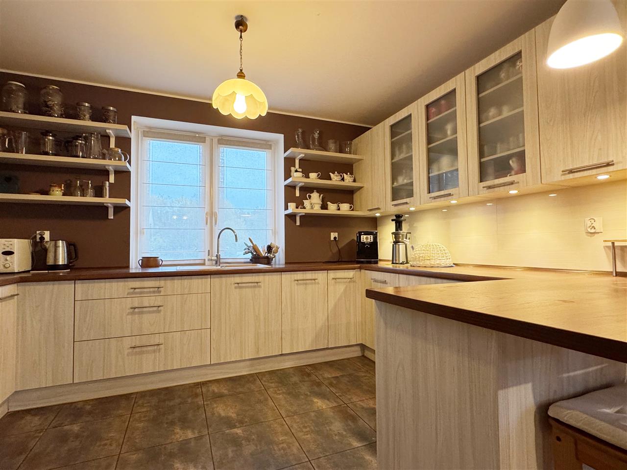 Dane techniczne:Budynek parterowy, niepodpiwniczony, materiał budulcowy: Porotherm, ściany wewnętrzne – pustak ceramiczny. Budynek posadowiony jest na ławie fundamentowej.Grubość ścian 52 cm, (ściana zewnętrzna -12 cm- cegła klinkierowa, pustka- 3 cm, docieplony styropianem 12 cm, Porotherm – 25 cm). Dach dwuspadowy pokryty dachówką ceramiczną.Elewacja: cegła klinkierowa. Ogrzewanie: pompa ciepła głębinowa Buderus z zasobnikiem, ogrzewanie podłogowe, panele fotowoltaiczne, kominek/koza. Okna PCV, dodatkowo moskitiera w salonie oraz żaluzje i rolety okienne.Ściana przy kozie z cegły czerwonej.Media: energia, woda– wodociąg gminny, światłowód.Przydomowa oczyszczalnia ścieków.Zbiornik na wodę z deszczówki z trzema punktami poboru wody na działce.Zewnętrzny punkt poboru wody pitnej.Wiata na samochód z pomieszczeniem gospodarczym oraz wiata na drewno.Dwa niezależne wejścia do budynku.Nieruchomość ogrodzona. Brama wjazdowa oraz garażowa na pilota.Instalacja alarmowa.Nieruchomość posiada liczne nasadzenia i krzewy, wydzielone miejsce na ogródek przydomowy.Podjazdy wyłożone polbrukiem, taras- deska kompozytowa.Bezpośredni dostęp do drogi asfaltowej.