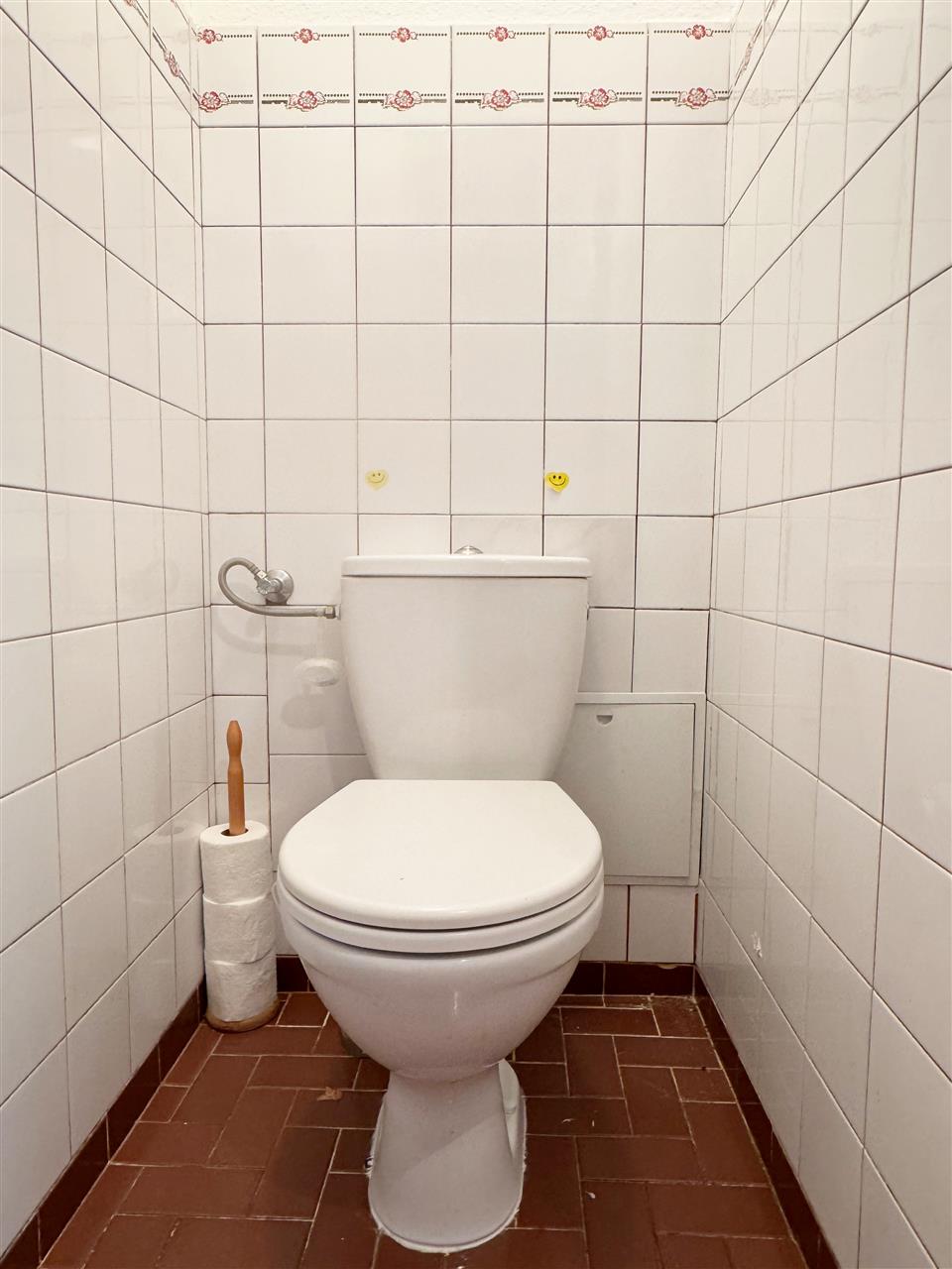 Łazienka i wc: glazura + terakota- starszego typu, wanna, umywalka, lustro, wc.