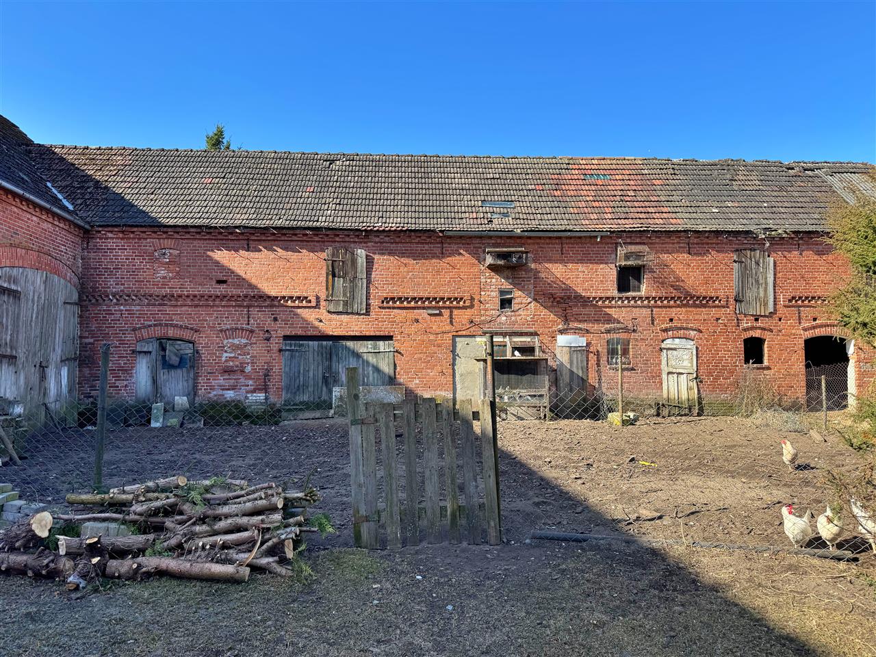· Budynki gospodarcze z czerwonej cegły pokryte dachówką cementową.