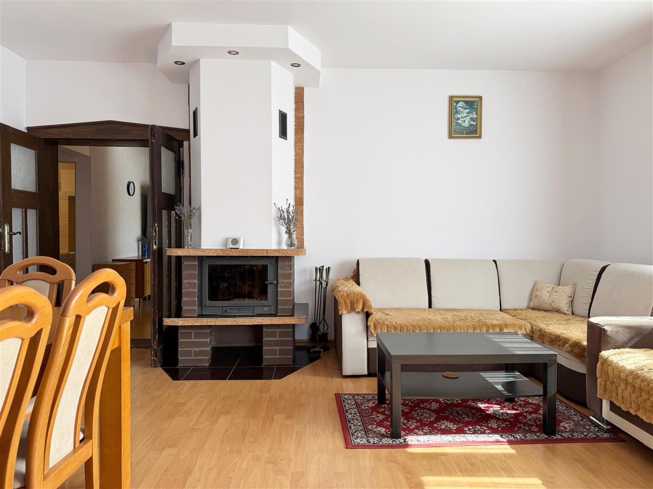 PIĘTRO: do remontu: 2 pokoje, kuchnia, łazienka, wc, pomieszczenie na piec w korytarzu, hall, garderoba. Na piętro możemy wejść z poziomu parteru oraz bezpośrednio z zewnątrz budynku, co stwarza możliwość wydzielenia osobnego mieszkania.
